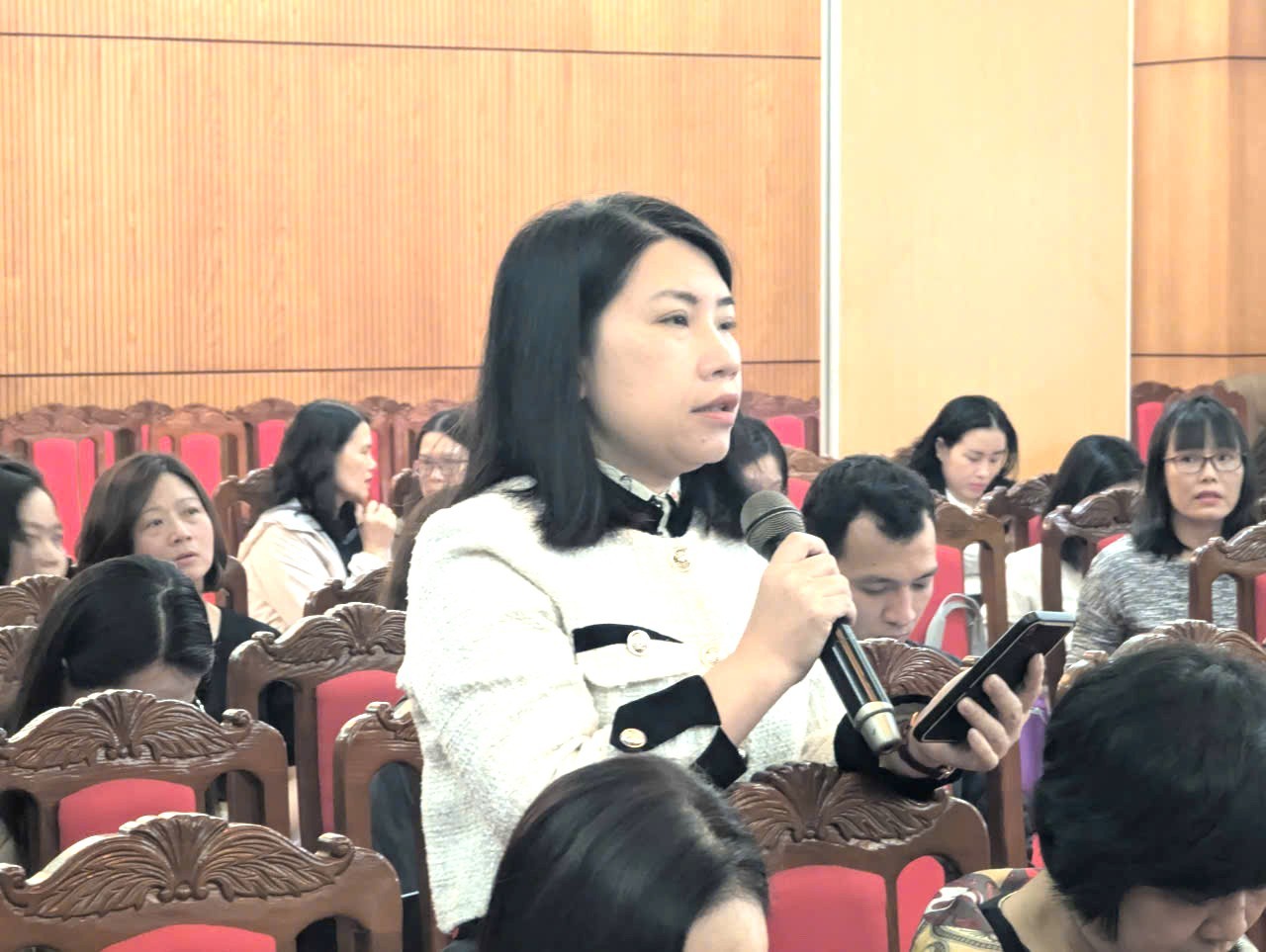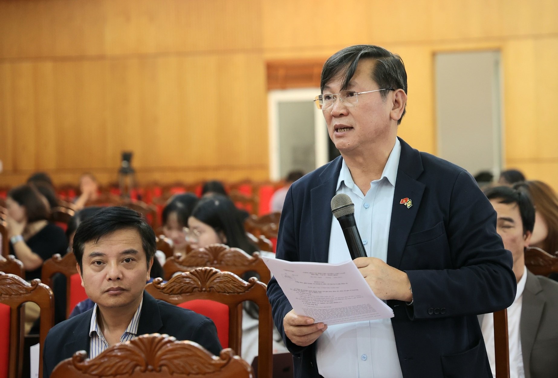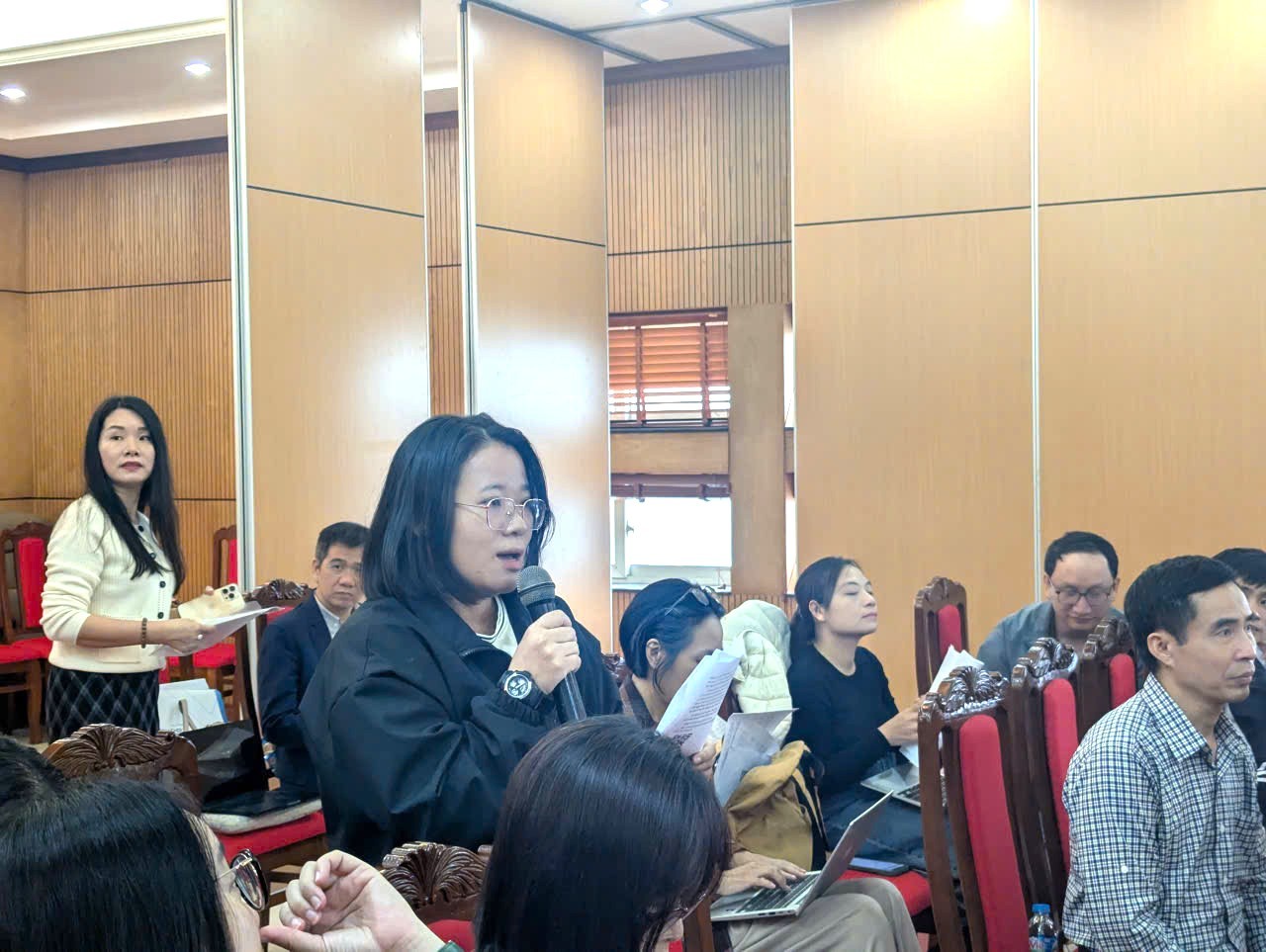 Các phóng viên đặt câu hỏi liên quan đến dự thảo Luật Dân số.