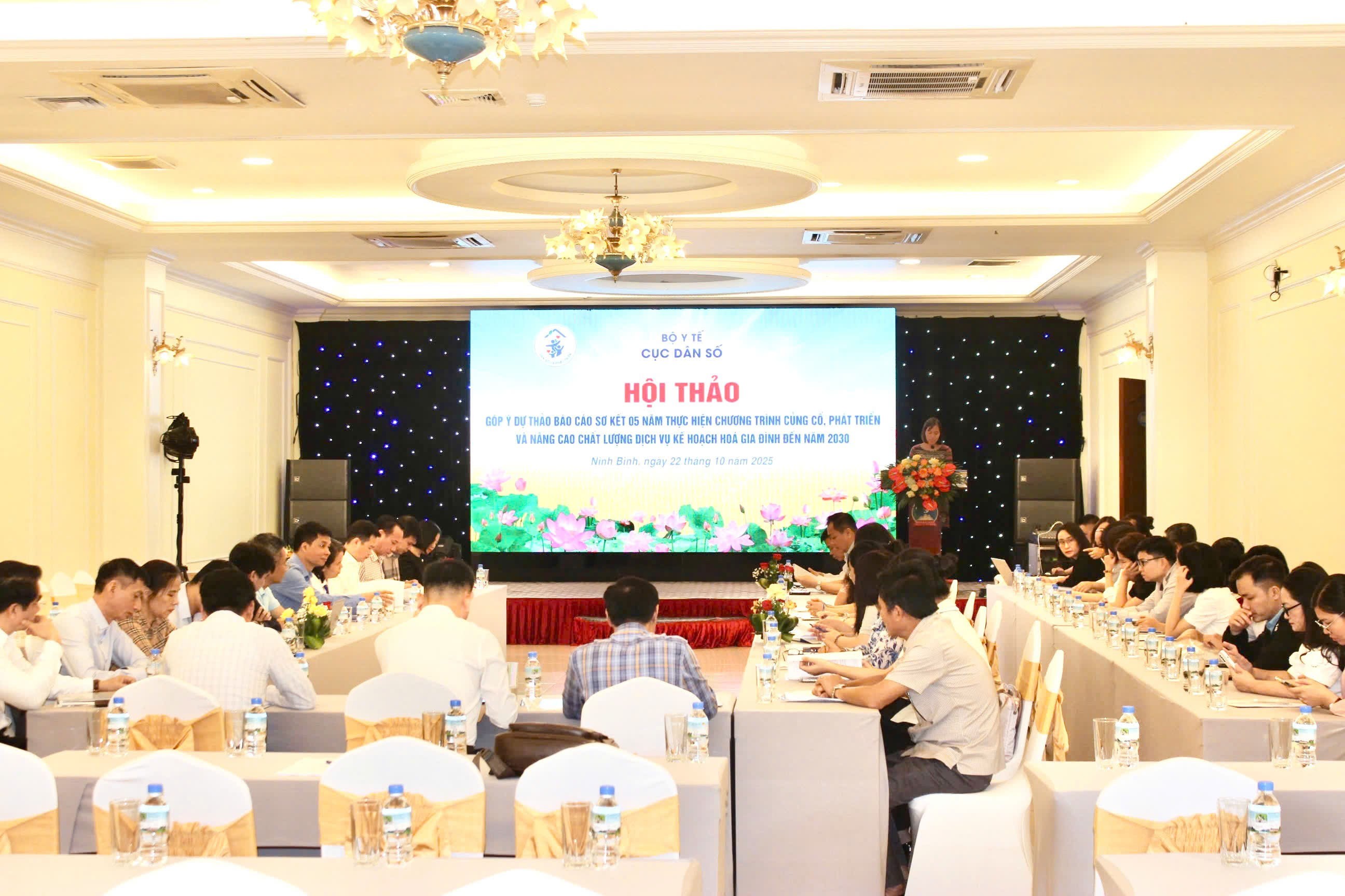 Ngày 22/10/2025, tại phường Hoa Lư (Ninh Bình), Cục Dân số, Bộ Y tế đã tổ chức Hội thảo góp ý dự thảo Báo cáo sơ kết 5 năm thực hiện Chương trình củng cố, phát triển và nâng cao chất lượng dịch vụ kế hoạch hoá gia đình (KHHGĐ) đến năm 2030. Tham dự Hội thảo có đại diện lãnh đạo Cục Dân số, Bộ Y tế, các vụ, đơn vị thuộc Bộ Y tế, đại diện Lãnh đạo Sở Y tế, Chi cục Dân số, phòng Dân số các tỉnh, thành phố, cùng các chuyên gia và cán bộ làm công tác dân số và KHHGĐ.